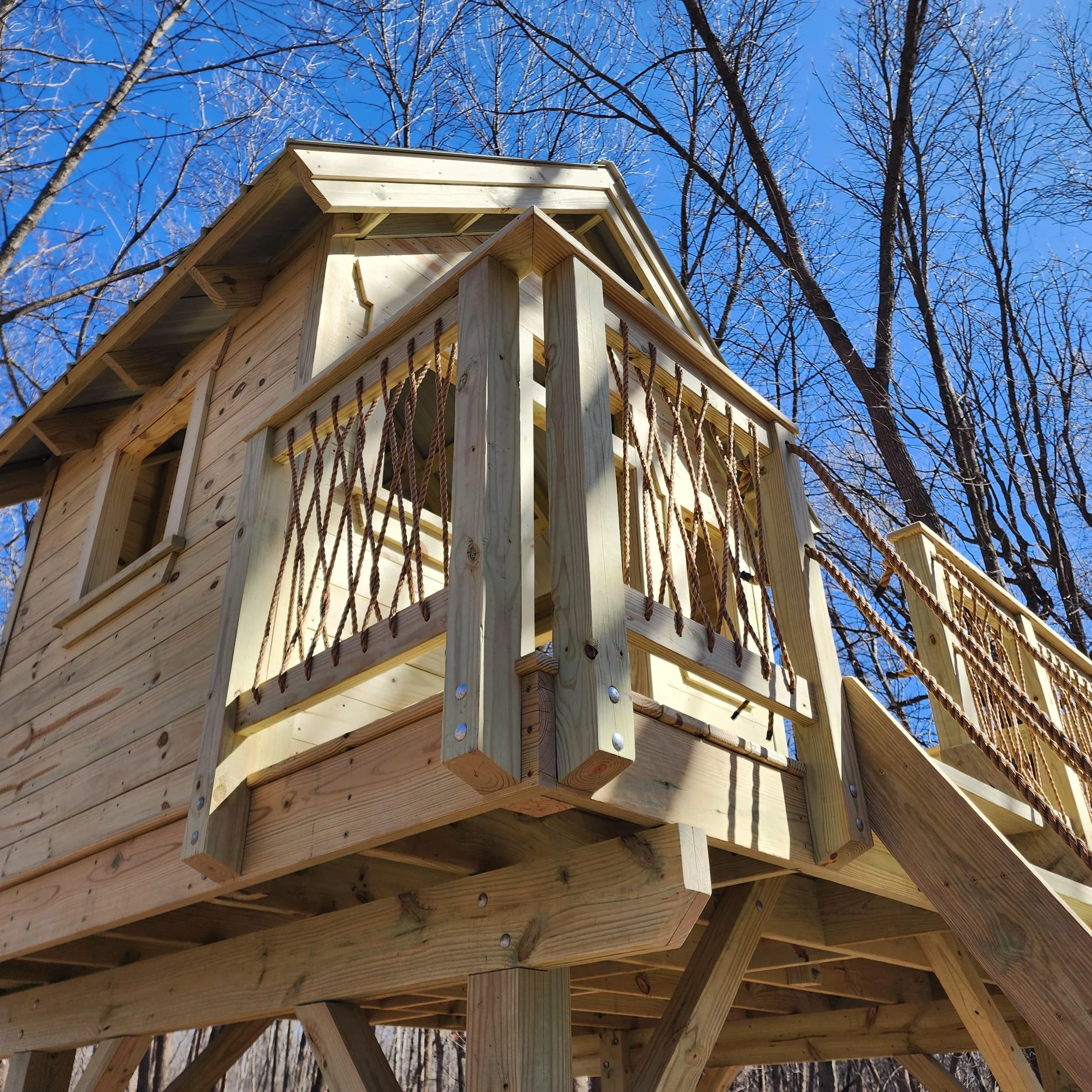 Designed as an inviting hangout spot that will last well into the teenage years, this play structure is perfect for kids growing up. It will undoubtedly become the cherished meeting spot for a group of friends who will gather and build countless magical memories together here. The fort features a bucket elevator to easily transport items up into the clubhouse, a secret compartment dedicated to securely storing treasures, and a service window designed specifically for imaginative pretend play. Additionally, there is ample space underneath to hang a few cozy hammocks for relaxing and lounging on lazy afternoons.